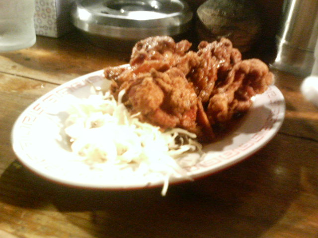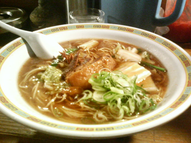 今回は天天有からすぐ近くのこれまた名店 天宝に行ってきました(σ・∀・)σ まず外観と店内がすごいオサレです! 店の中ではダブ・レゲエとか、かかってました♪ 京都市左京区高野玉岡 TEL=075-724-1912 営業時間=19:00~27:00 定休日=月曜日 駐車場=なし コインパーキングがすぐ近くにあるぜー。 角煮ラーメン(600円)頼みましたー。 これまずびっくりするのがスープ!! あんかけ風にとろっとろやねん!! それに香ばしくってもう最高ですよ(*≧∀≦*) 角煮もでっかいのがボンと乗ってるので満足です☆ カラアゲは特製のタレが付いてるんですが これまたうまい! なんか甘酸っぱい中華のタレあるやん? 酢豚のあんかけの感じ。 衣も薄くて俺好みです☆ ロックな毎日